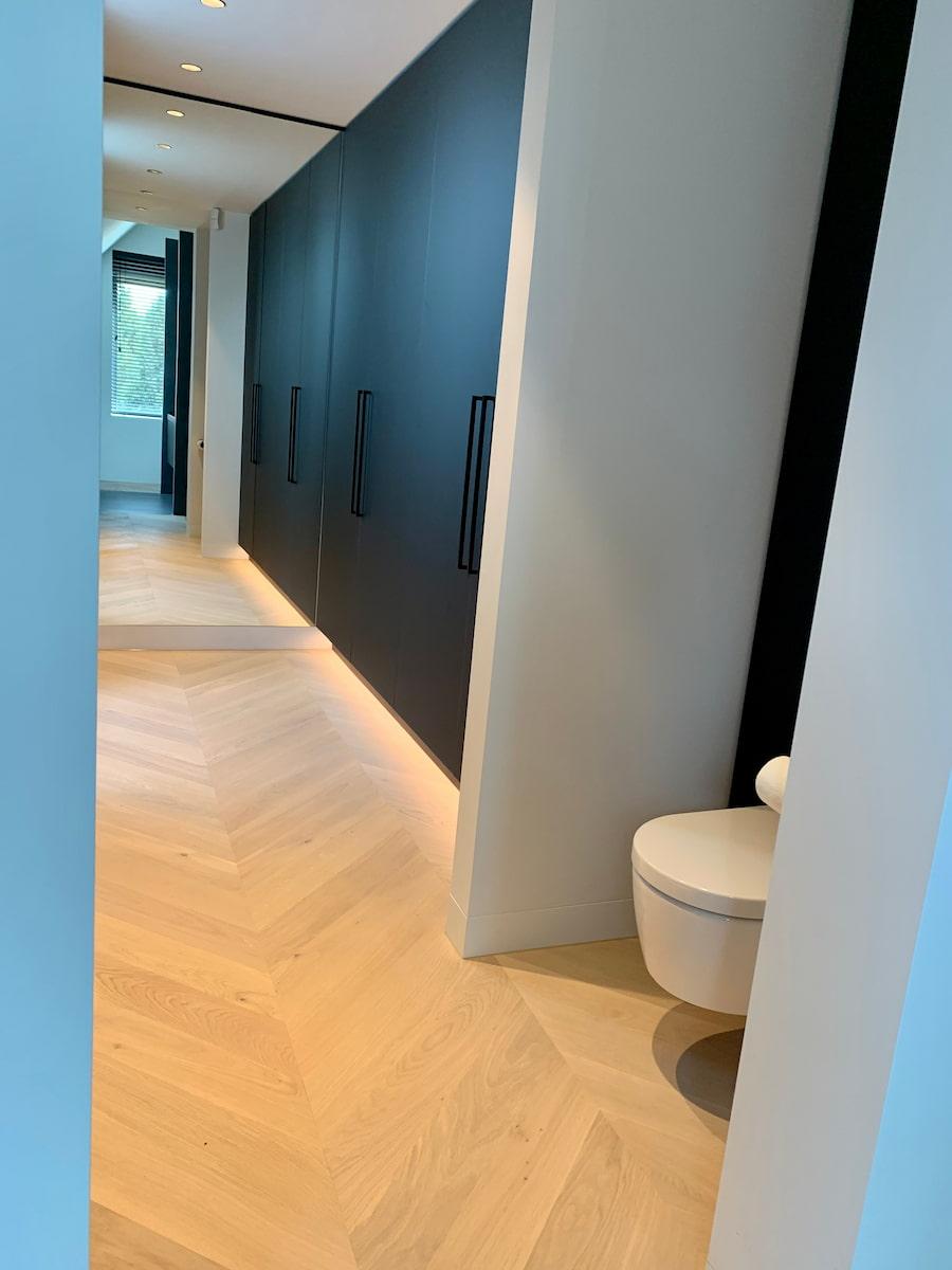 Het kiezen van de juiste vloer in je kledingkamer is minstens zo belangrijk als de keuze voor de juiste de meubels. Voor een ruimte waar je veel staat en beweegt, heb je niet alleen een stijlvolle, maar ook comfortabele vloer nodig. Een houten vloer heeft een mooie natuurlijke en strakke uitstraling en is eenvoudig schoon te houden. Wil je écht een comfortabele kledingkamer waar je de favoriete plek in huis van maakt? Kies dan voor vloerverwarming- en verkoeling: altijd de perfecte temperatuur, zowel tijdens strenge winters als hete zomers. Ook kun je nog een leuk vloerkleed of tapijt toevoegen voor extra sfeer, maar ook lekker zacht comfort.
